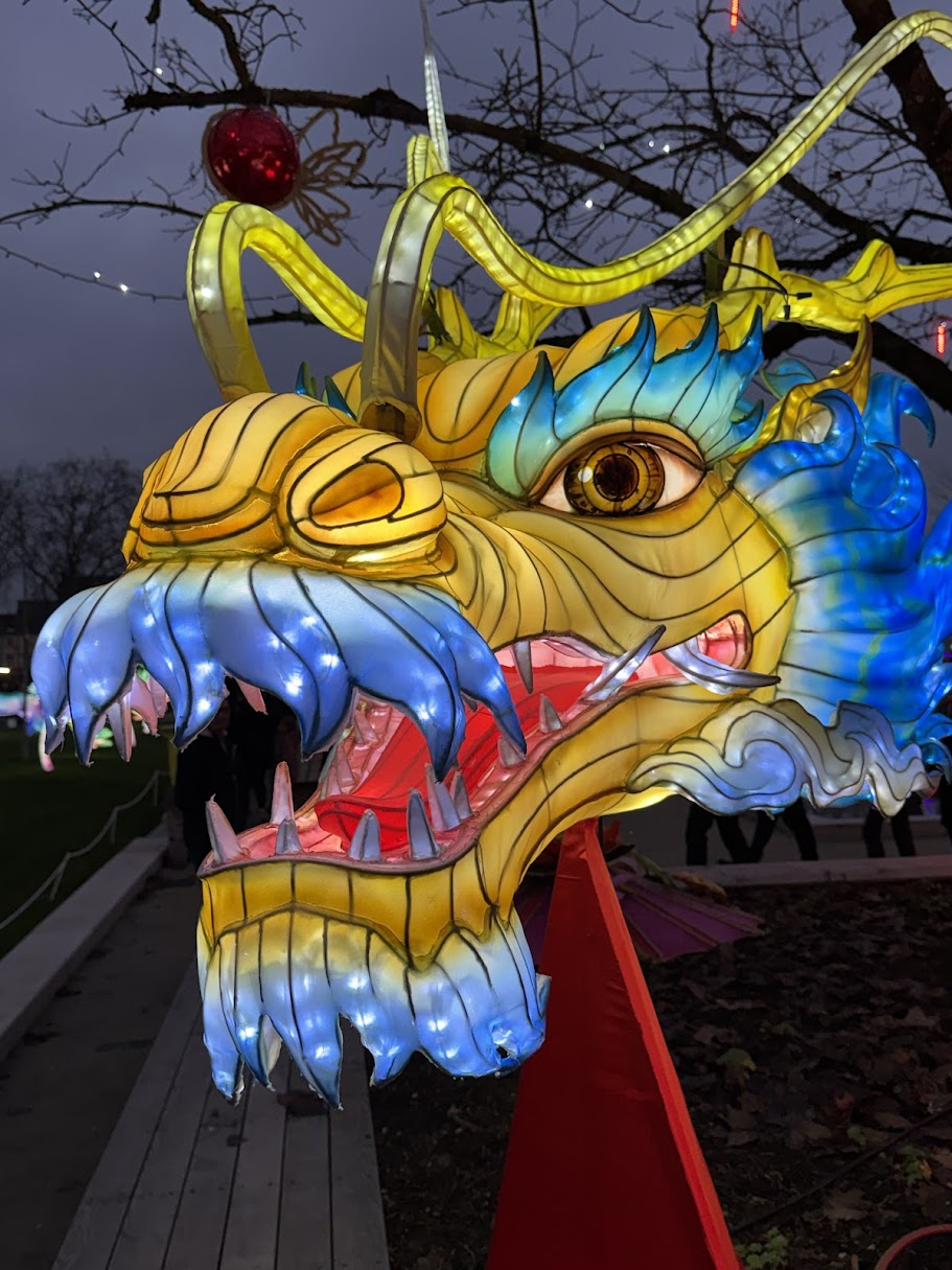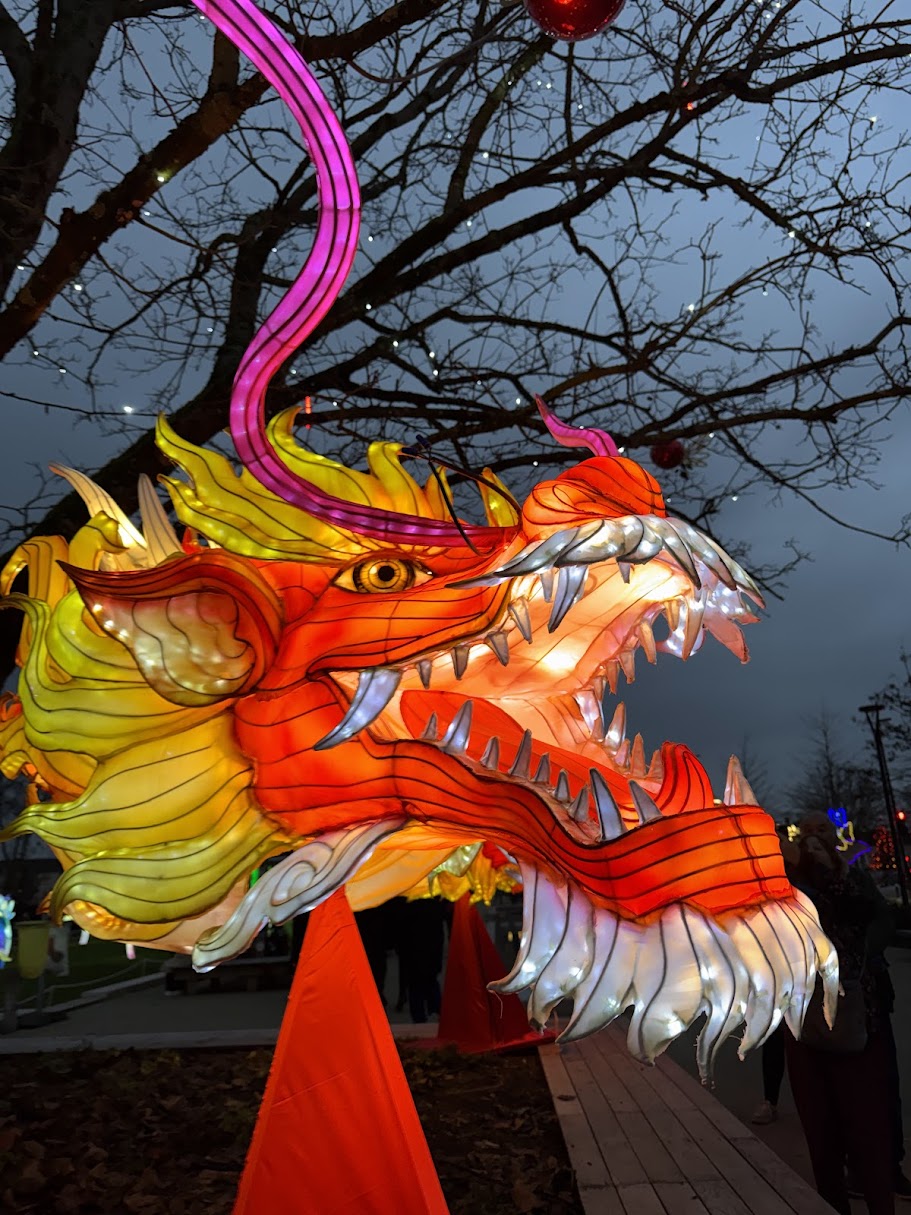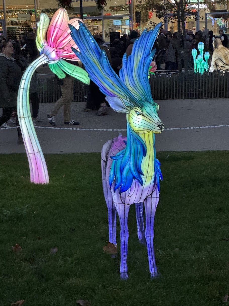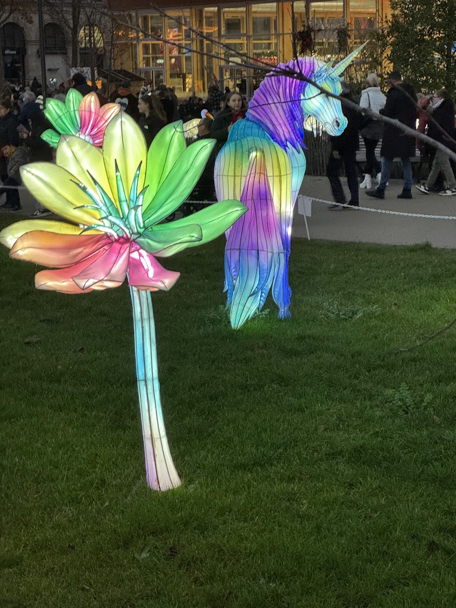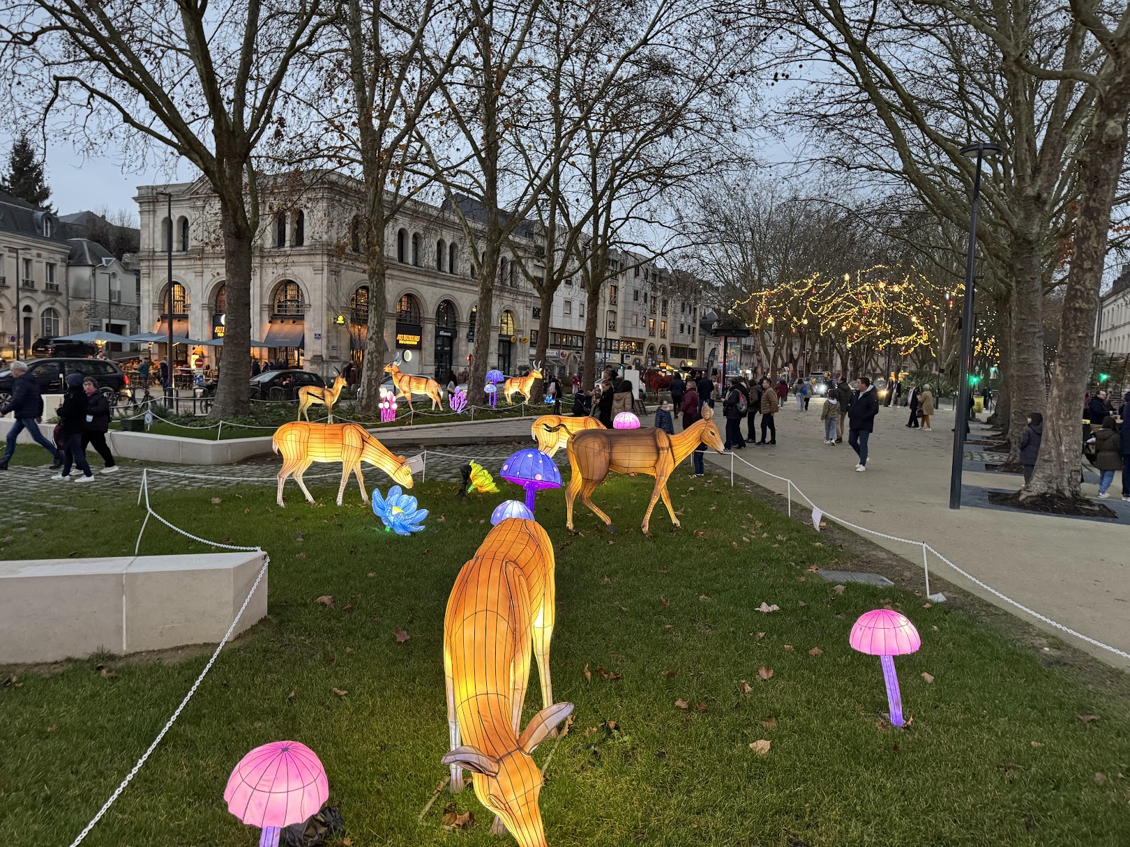La place du 11-Novembre devient un jardin de lanternes géantes, peuplé d’animaux fantastiques, de fleurs lumineuses, de papillons et de formes oniriques, et on comprend vite pourquoi les enfants marchent un peu plus lentement, comme s’ils voulaient que ça dure.